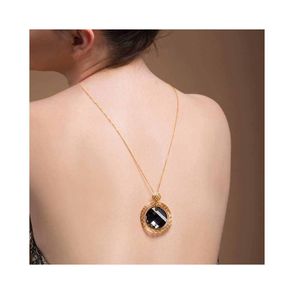 Naszyjnik wykonany z pozłacanego srebra próby 925 oraz ekskluzywnych kryształów crystals w kolorze Crystal.Długość łańcuszka: 47 cm (42 cm + 5 cm przedłużka). Długość wisiorka: 3.5 cm.