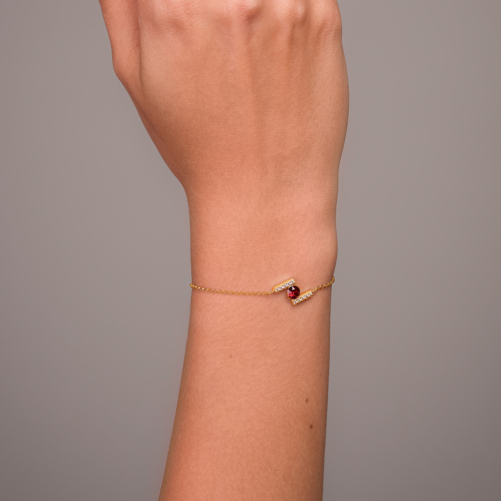 Bransoletka srebrna pozłacana CHATON z czerwonym kryształem |SPARK