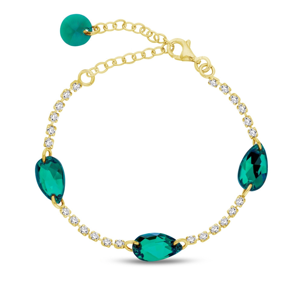 Naszyjnik wykonany z pozłacanego srebra próby 925 oraz austriackich kryształów w kolorze Emerald.