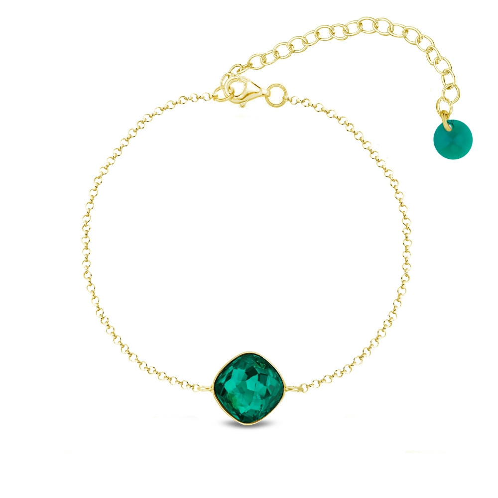 Naszyjnik wykonany z pozłacanego srebra próby 925 oraz austriackich kryształów w kolorze Emerald.Długość łańcuszka: 47 cm (42 cm + 5 cm przedłużka). Długość wisiorka: 1,3 cm. Wielkość kryształu: 1 cm.