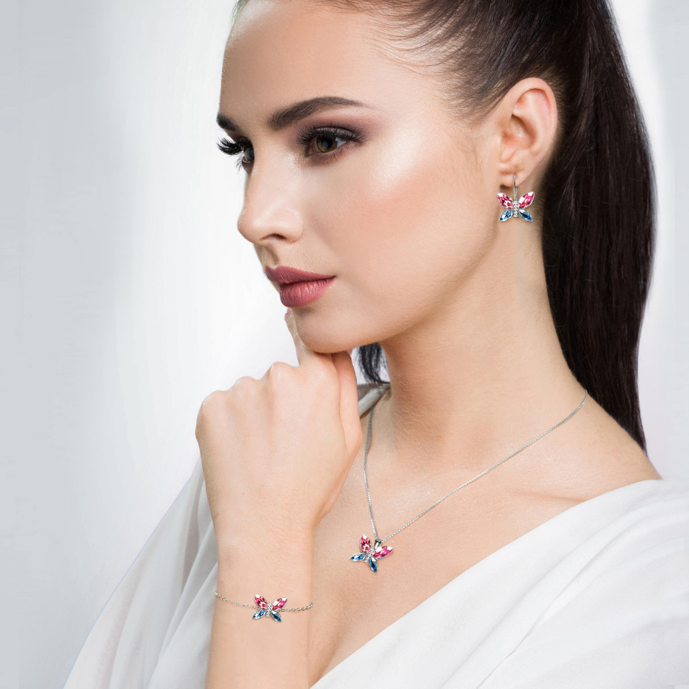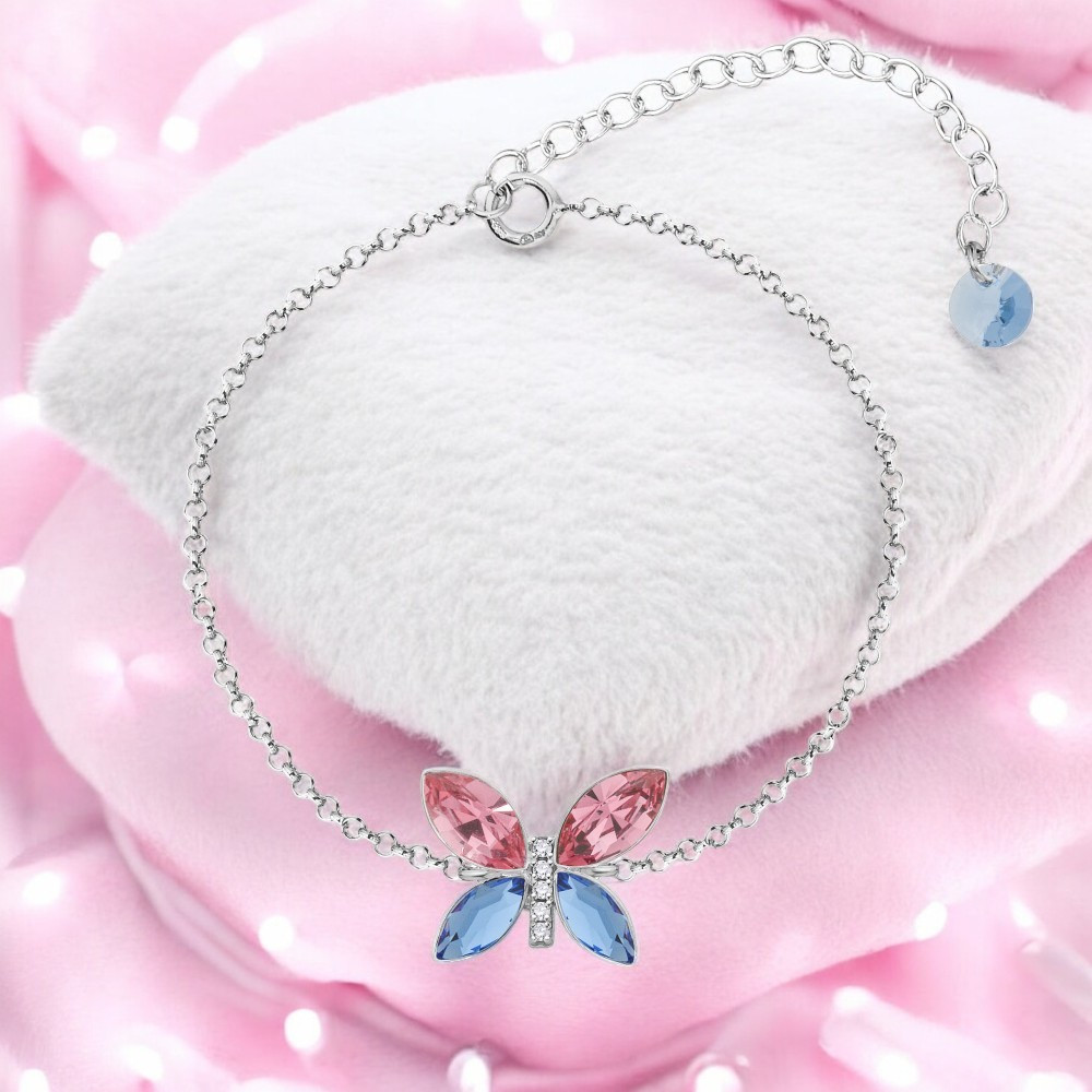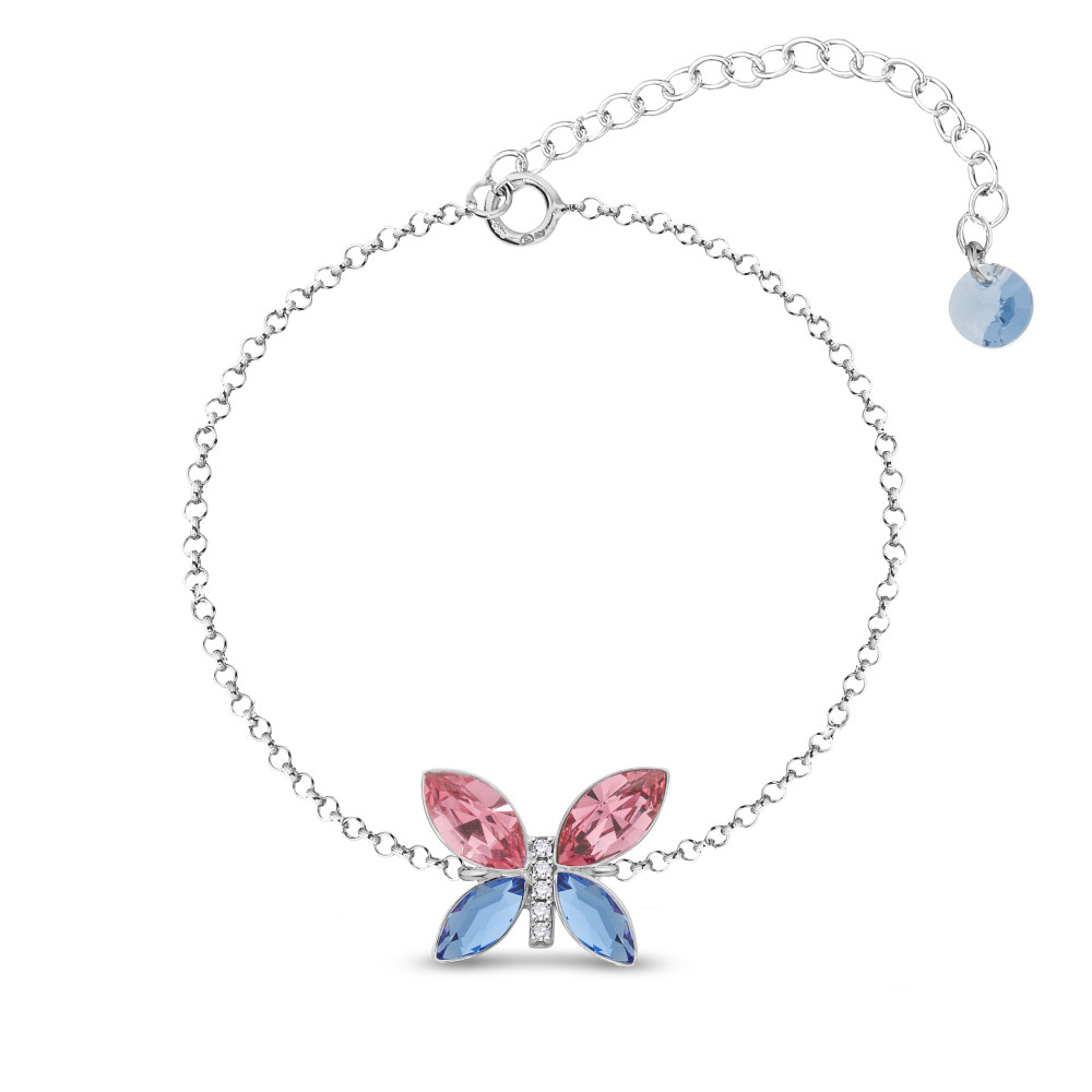Srebrna bransoletka IMAGO z motywem motyla z różowymi i niebieskimi kryształami