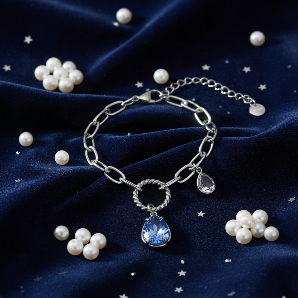 Bransoletka RAYON z niebieskimi kryształami i stalą szlachetną | SPARK