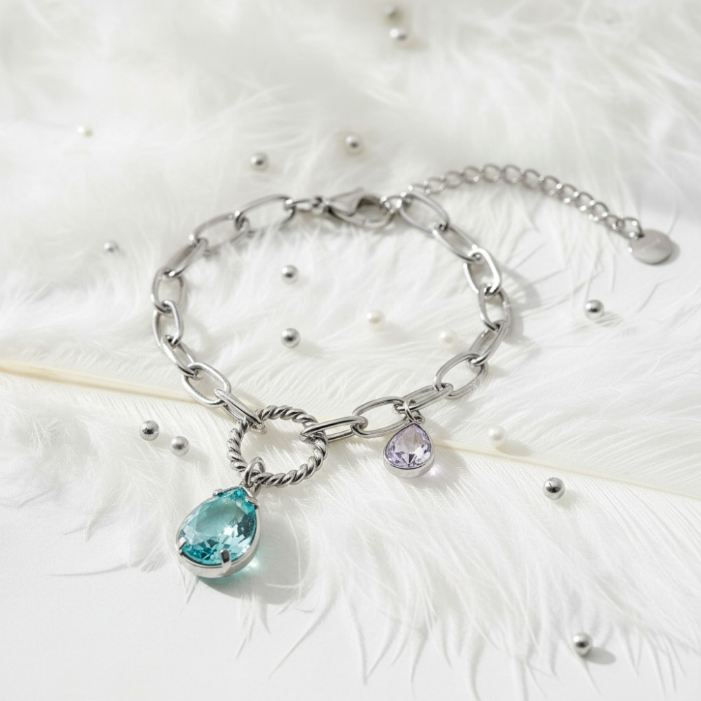 Główna zawieszka: łezka Swarovski® w kolorze niebieskim (lagunowy/aqua) (~18 mm)