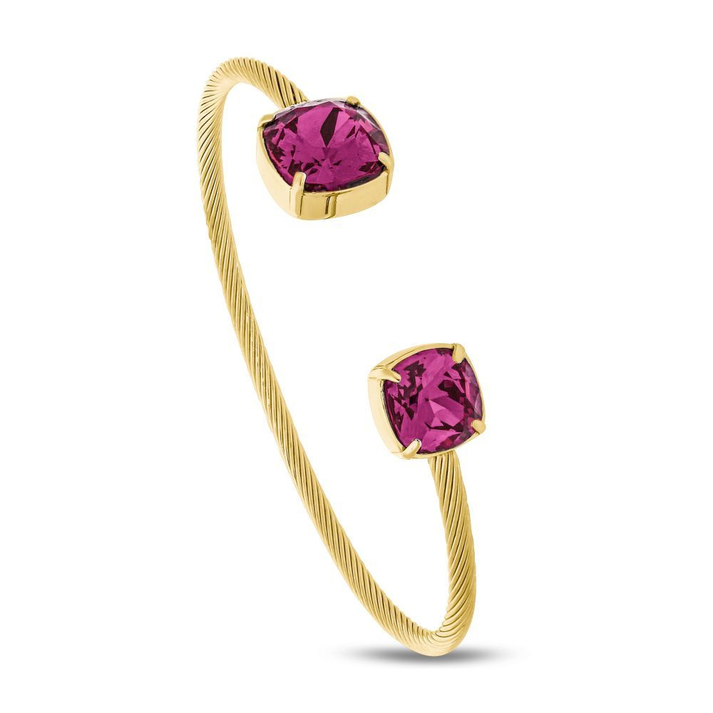 Bransoletka MIRAGE ze stali nierdzewnej, pozłacana, z różowym kryształem | SPARK