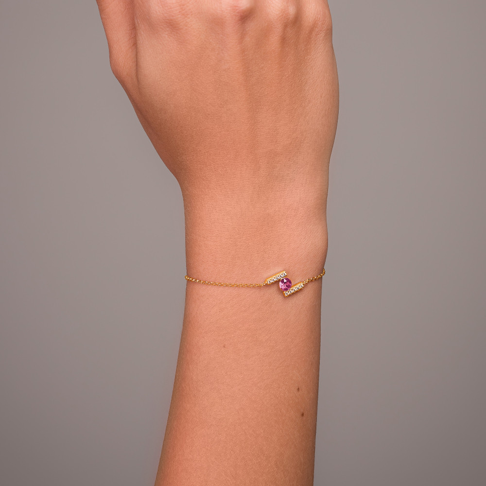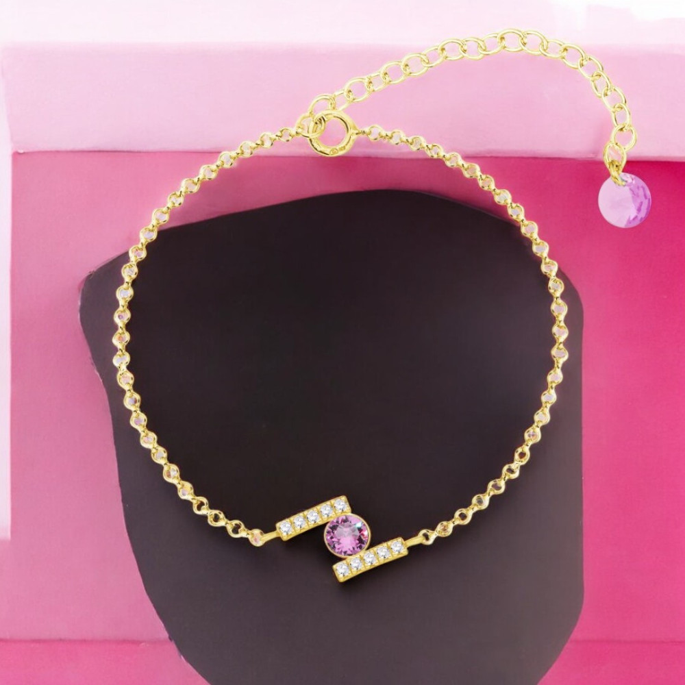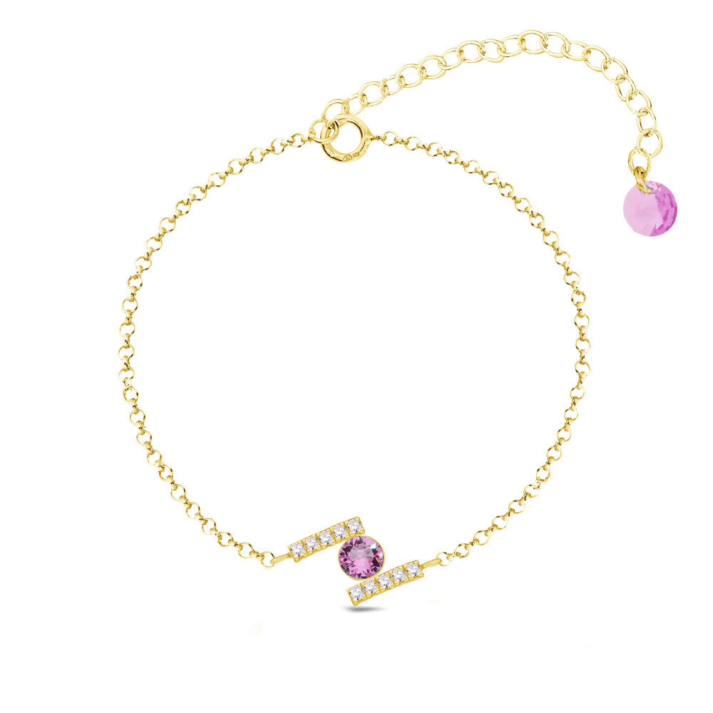 Bransoletka srebrna pozłacana CHATON z różowym kryształem |SPARK