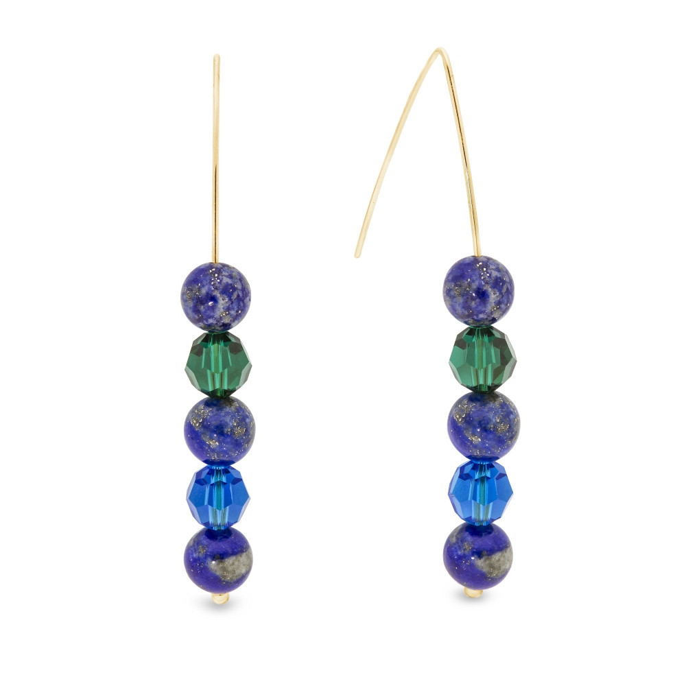 Necklace made of gold plated 925 sterling silver and Austrian crystals in colours Emerald and Capri Blue and natural stones - Lapis Lazuli.