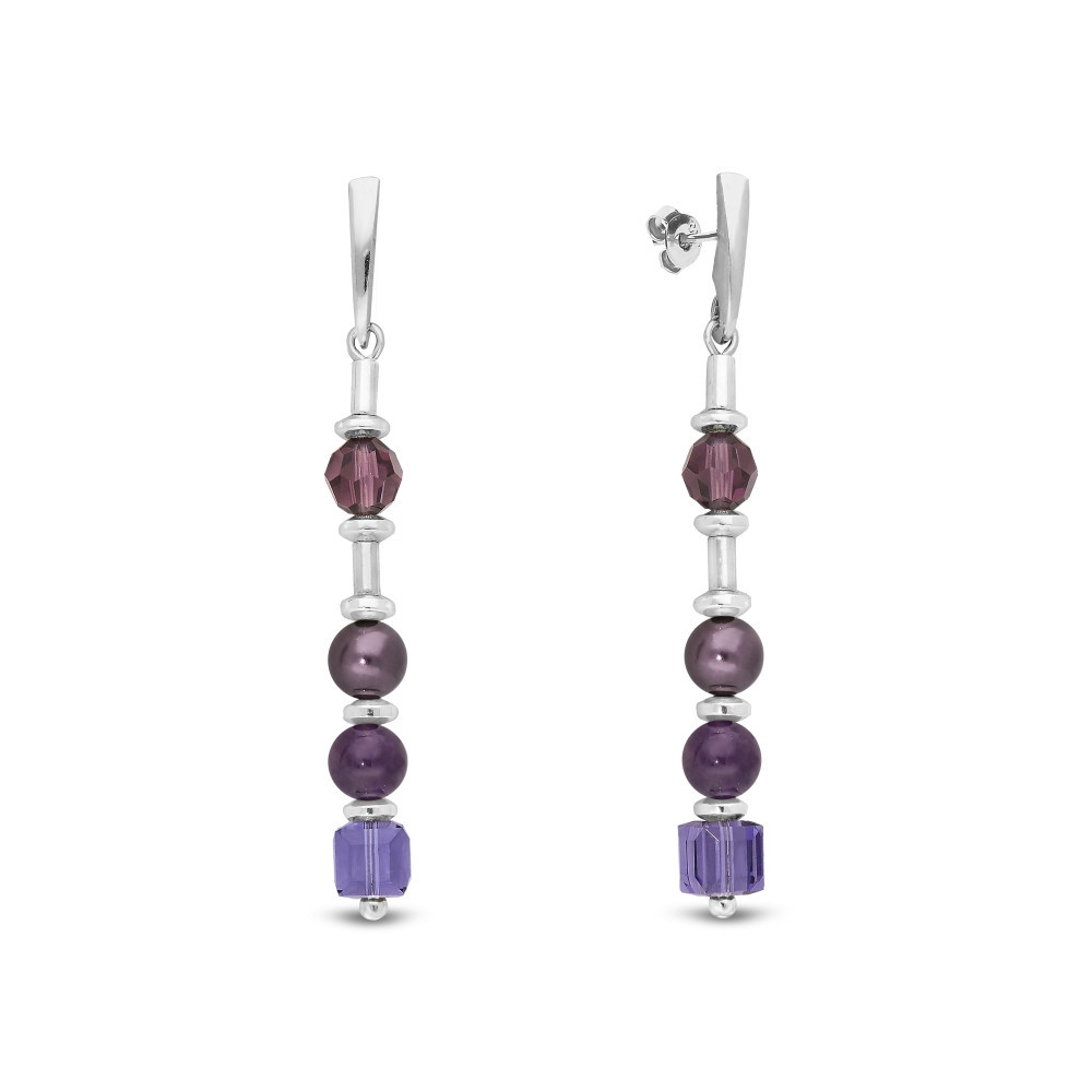 Earrings made of 925 silver platinum-plated, hematites, natural stones Botswana agates, Austrian crystals in colour Black Diamond and Austrian pearls in colour Light Gray.Earrings length: 6 cm.