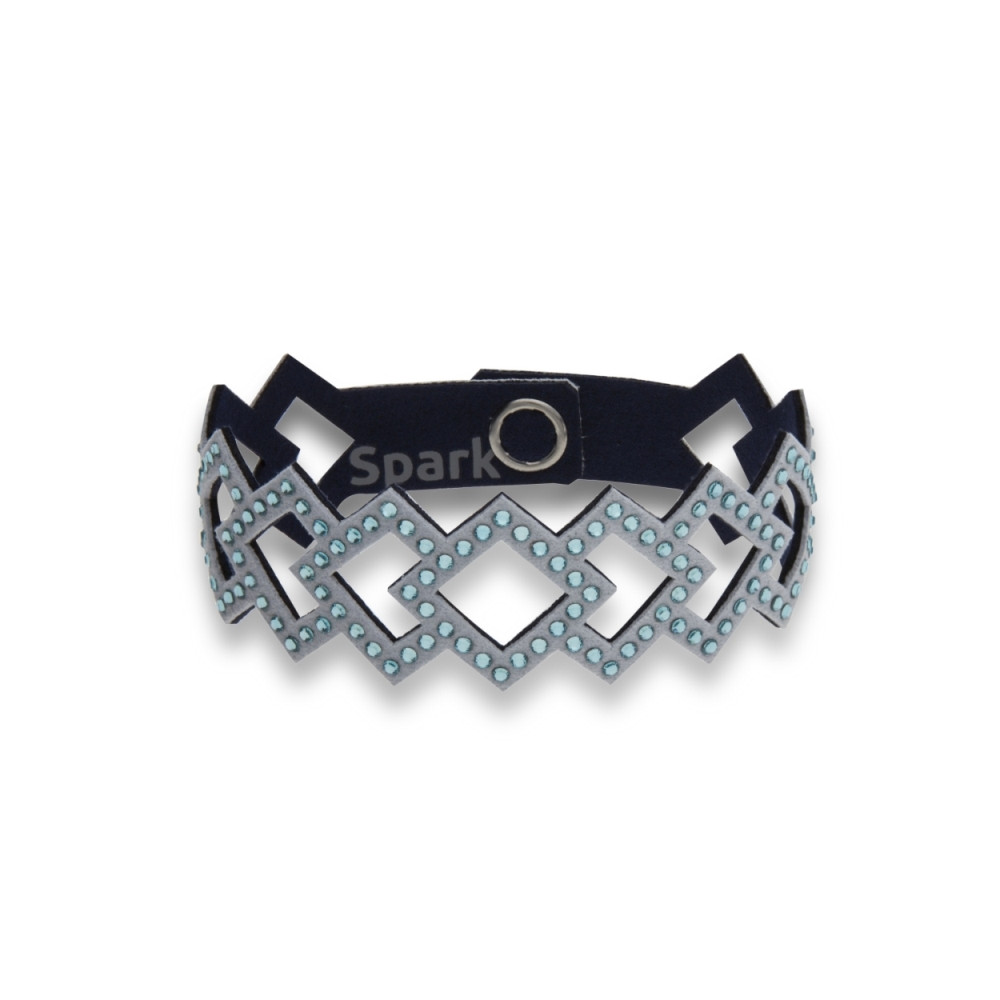 Bracelet made of baby blue Alcantara® and exclusive crystals in colours Light Turquoise and Paradise Shine.Bracelet length: 18.5 cm. Bracelet width: 4.3 cm.