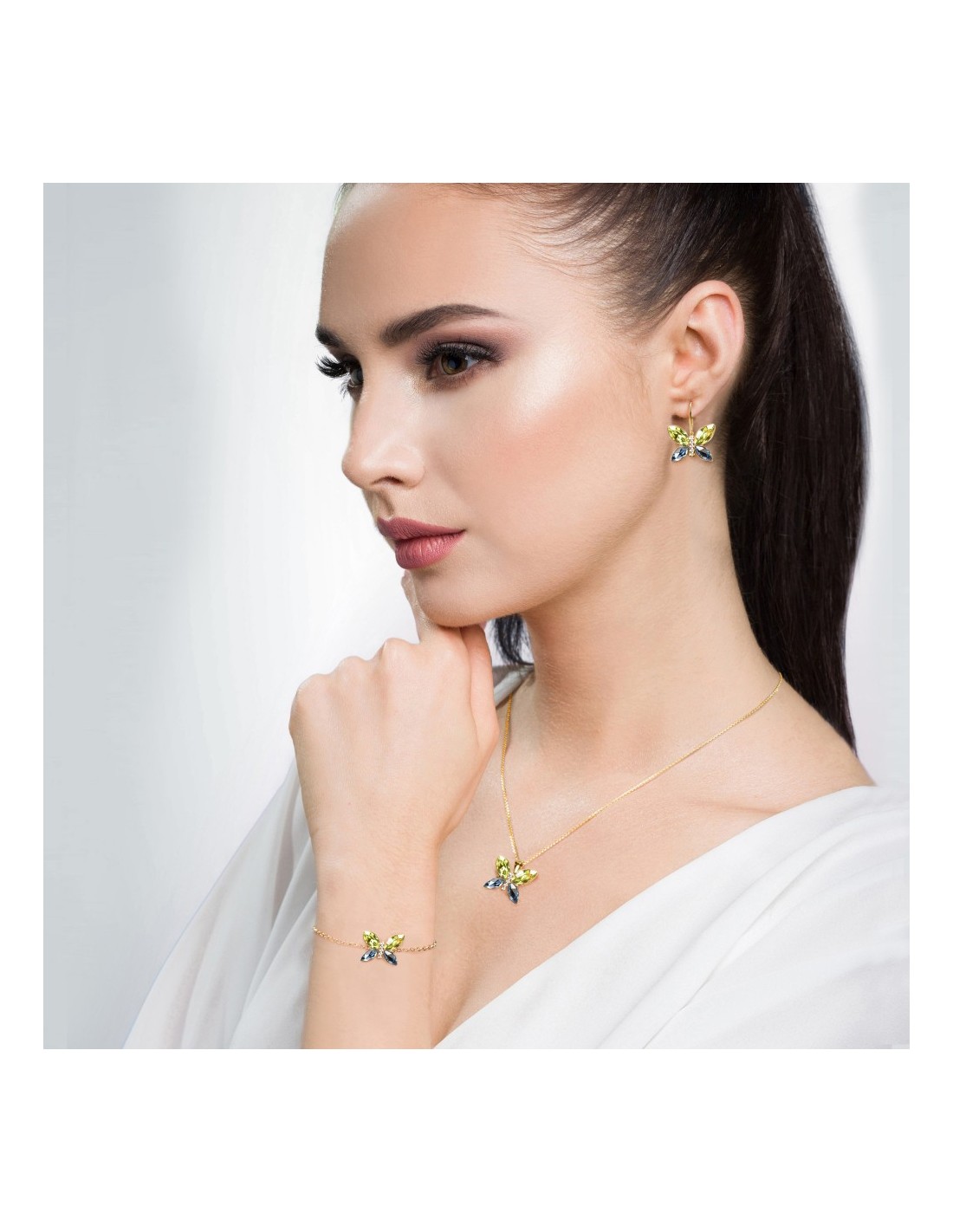 The silver-gilded bracelet is a stunning piece of jewellery, showcasing an exquisite design that features sparkling zirconia and elegant Austrian crystals. The crystals are artfully arranged in vibrant shades of lemon yellow and sky blue, creating a lively contrast that enhances the overall aesthetic of the bracelet. With a length of 16 cm, plus an extension that brings the total to 21 cm, it is designed to fit comfortably on the wrist while making a bold statement.
