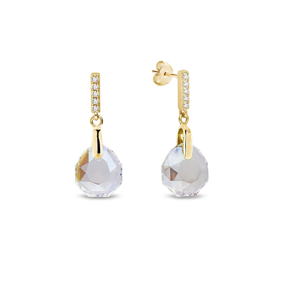 Necklace made of gold plated 925 sterling silver, zircons and Austrian crystals in color Crystal Shimmer.Chain length: 47 cm (42 cm + 5 cm extension).Pendant length: 3 cm.Crystal size: 1,6 cm.