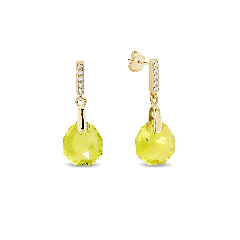Necklace made of gold plated 925 sterling silver, zircons and Austrian crystals in color Citrus Green.Chain length: 47 cm (42 cm + 5 cm extension).Pendant length: 3 cm.Crystal size: 1,6 cm.