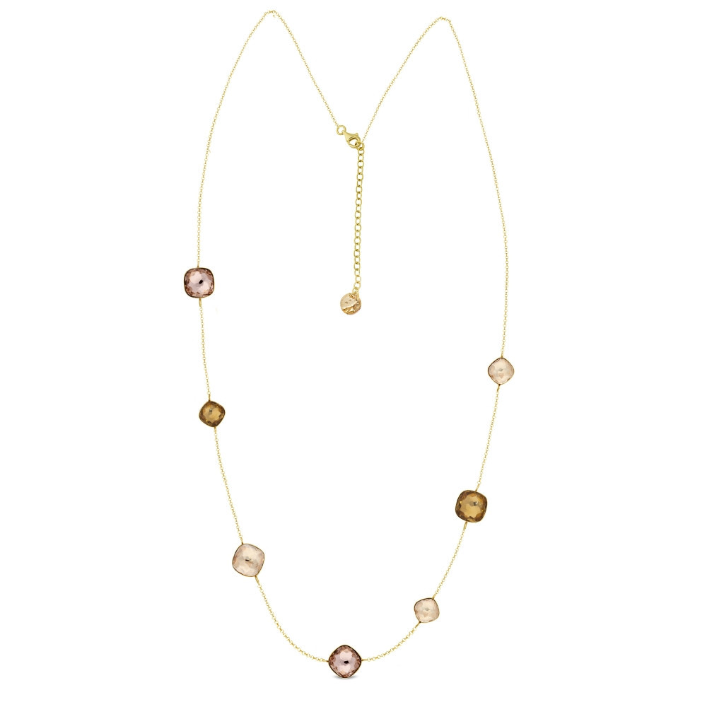 Necklace made of gold plated 925 sterling silver and Austrian crystals in colour Light Colorado Topaz.Chain length: 47 cm (42 cm + 5 cm extension). Pendant length: 1,3 cm. Crystals size: 1 cm.