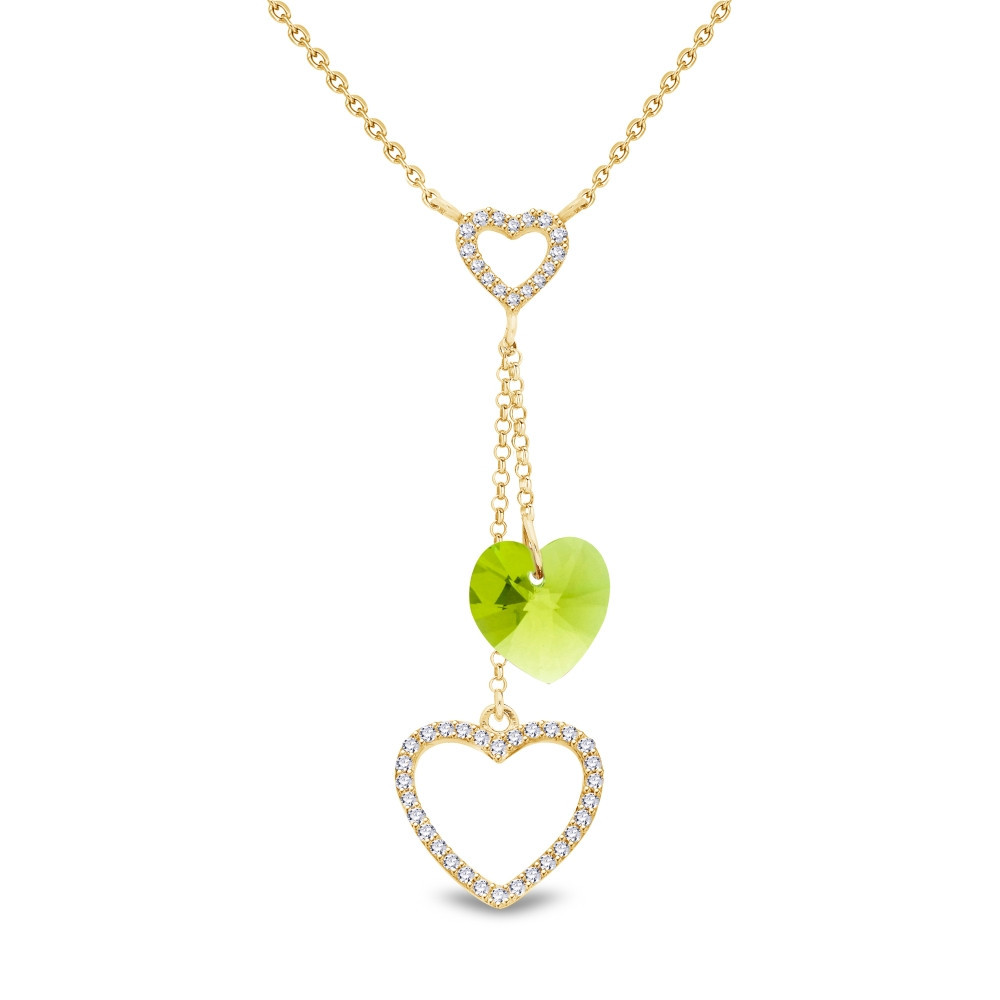 Necklace made of gold plated 925 silver and Austrian crystals in colour Citrus Green.