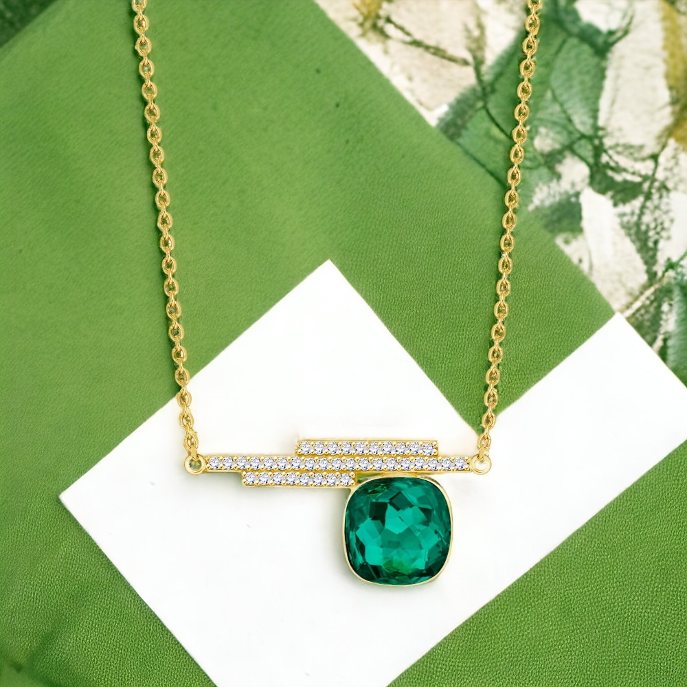 Necklace made of gold plated 925 sterling silver, zircons and Austrian crystals in color Emerald.