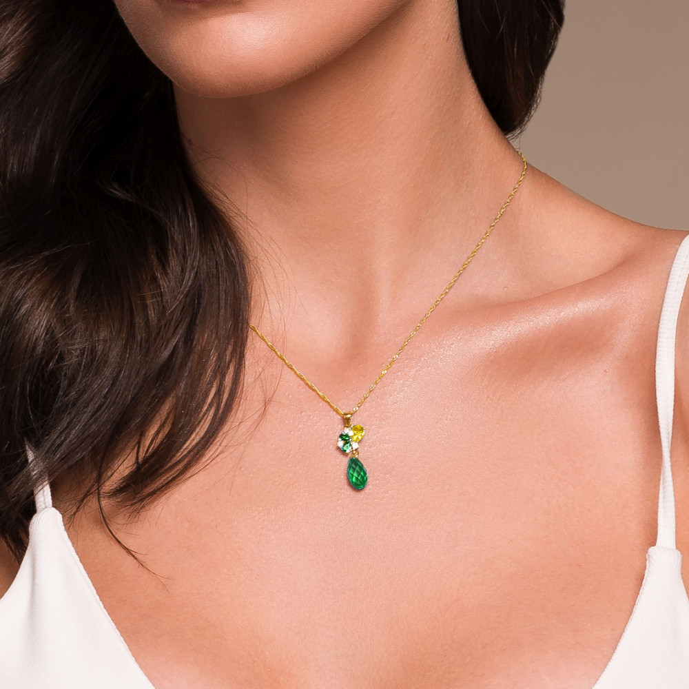 The BLATTER necklace combines warm golden tones with the depth of green. Crafted from gold-plated sterling silver, it features a green Swarovski® crystal that reflects light with rich, natural brilliance.