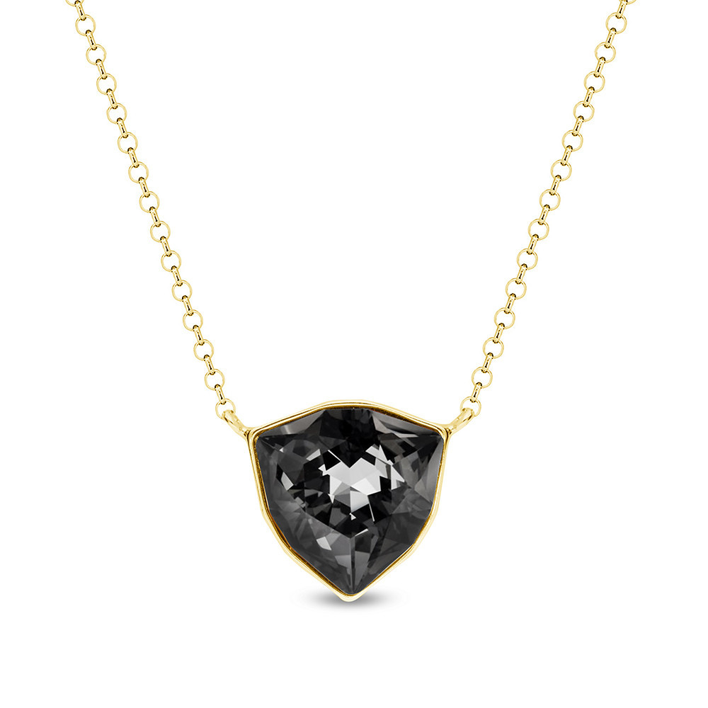 Necklace made of gold plated 925 sterling silver and exclusive Austrian crystals in coloure Silver Night and natural stones- Botswana Agat.
