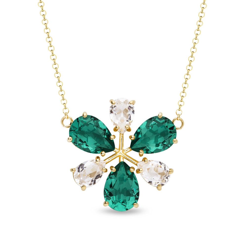 Necklace made of gold plated 925 sterling silver and Austrian crystals in colors Emerald and Crystal.Necklace length: 47 cm (42 cm + 5 cm extension).Crystal size: 1,4 cm and 1 cm.