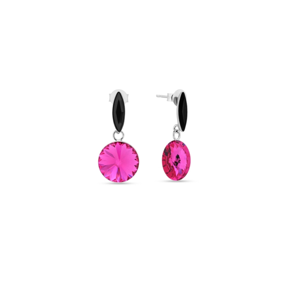 Earrings made of 925 sterling silver and exclusive crystals in colours Jet Hematite and Fuchsia.Earrings length: 5 cm.