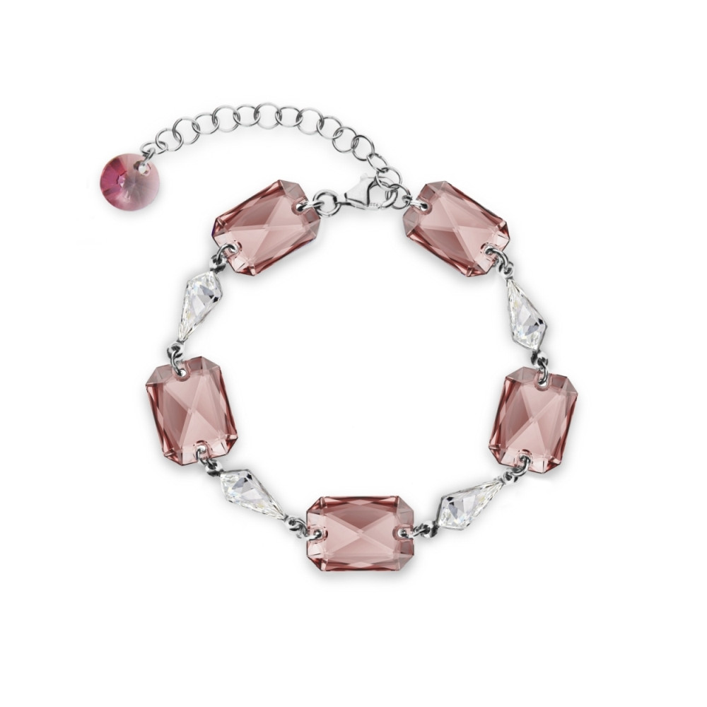 Necklace made of 925 sterling silver and exclusive crystals in colours Vintage Rose and Crystal.Necklace length: 47cm (42cm + 5 cm extension). Pendant length: 4 cm.