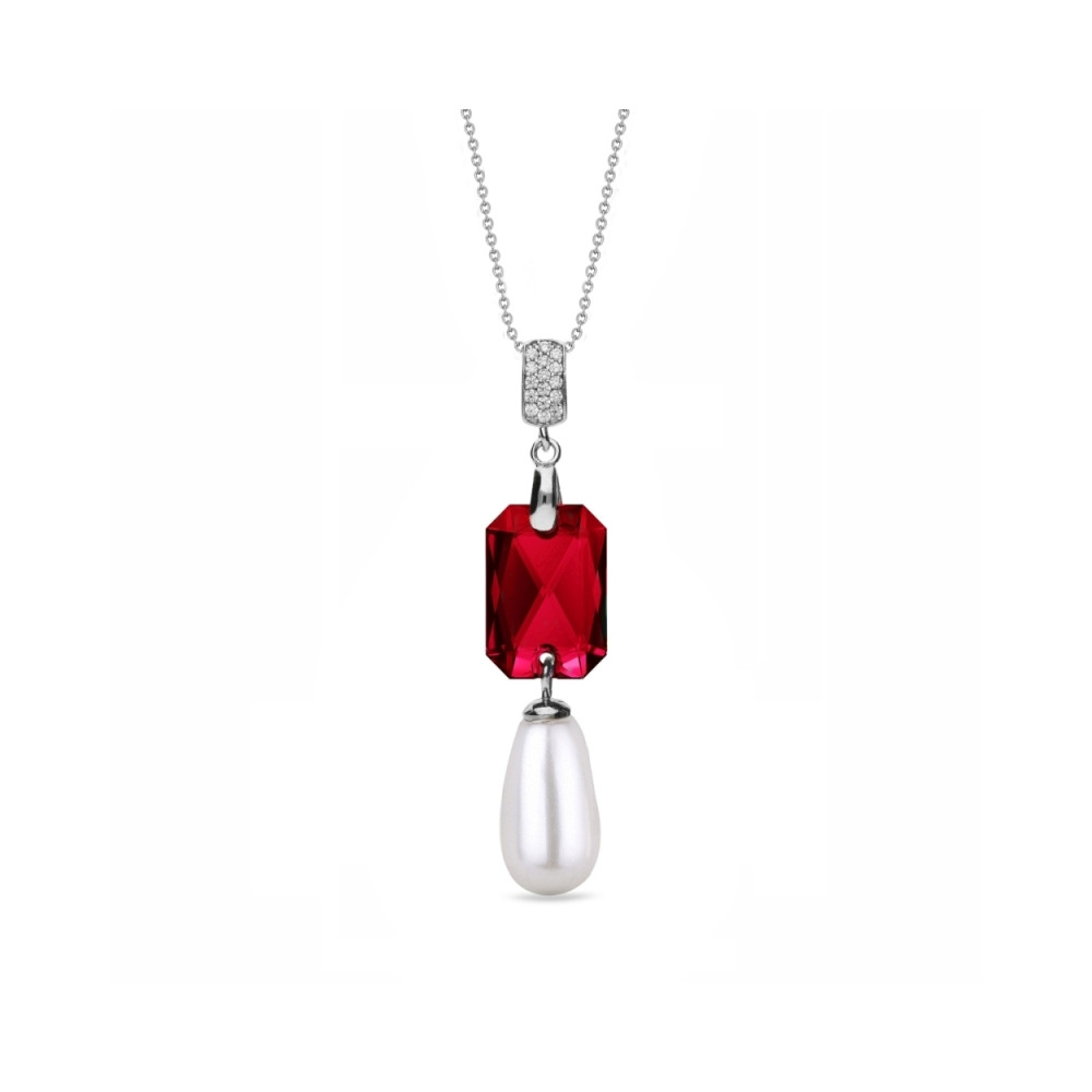 Necklace made of 925 sterling silver and exclusive crystals in colour Scarlet as well as crystal pearls in colour White.