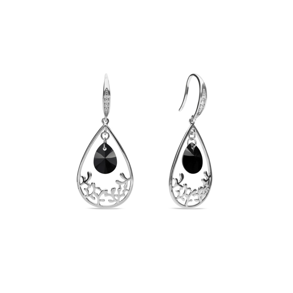 Earrings made of gold plated 925 sterling silver and exclusive crystals in colour Jet.Earrings length: 4.4 cm.