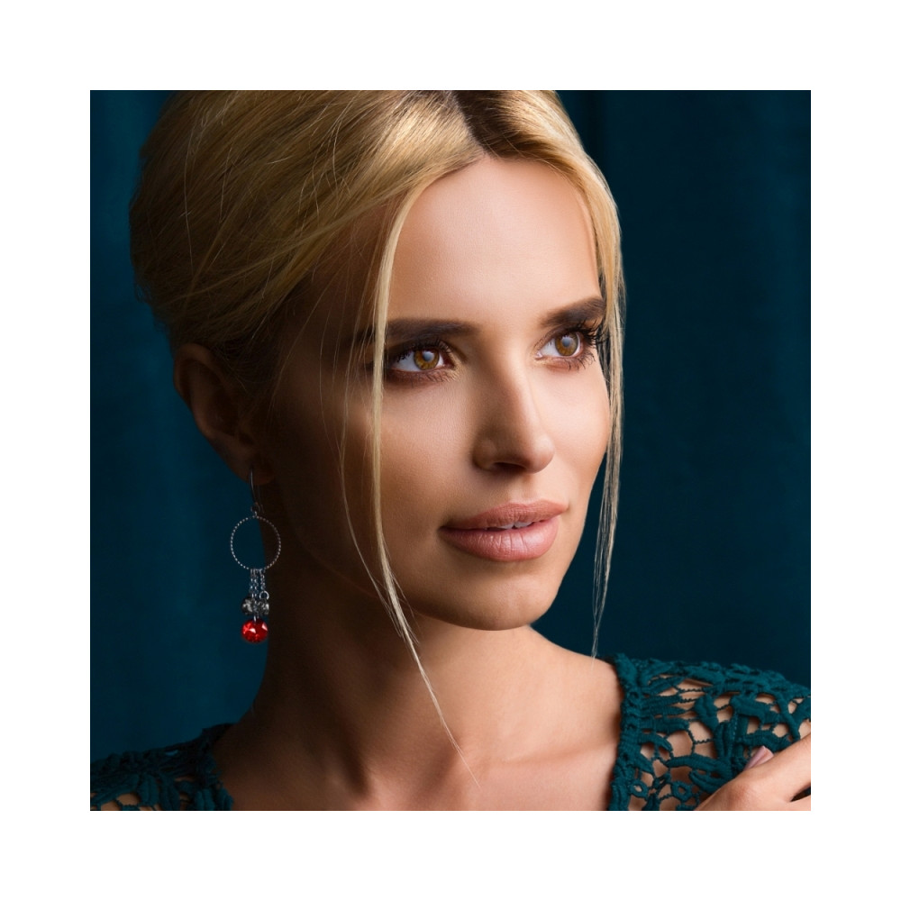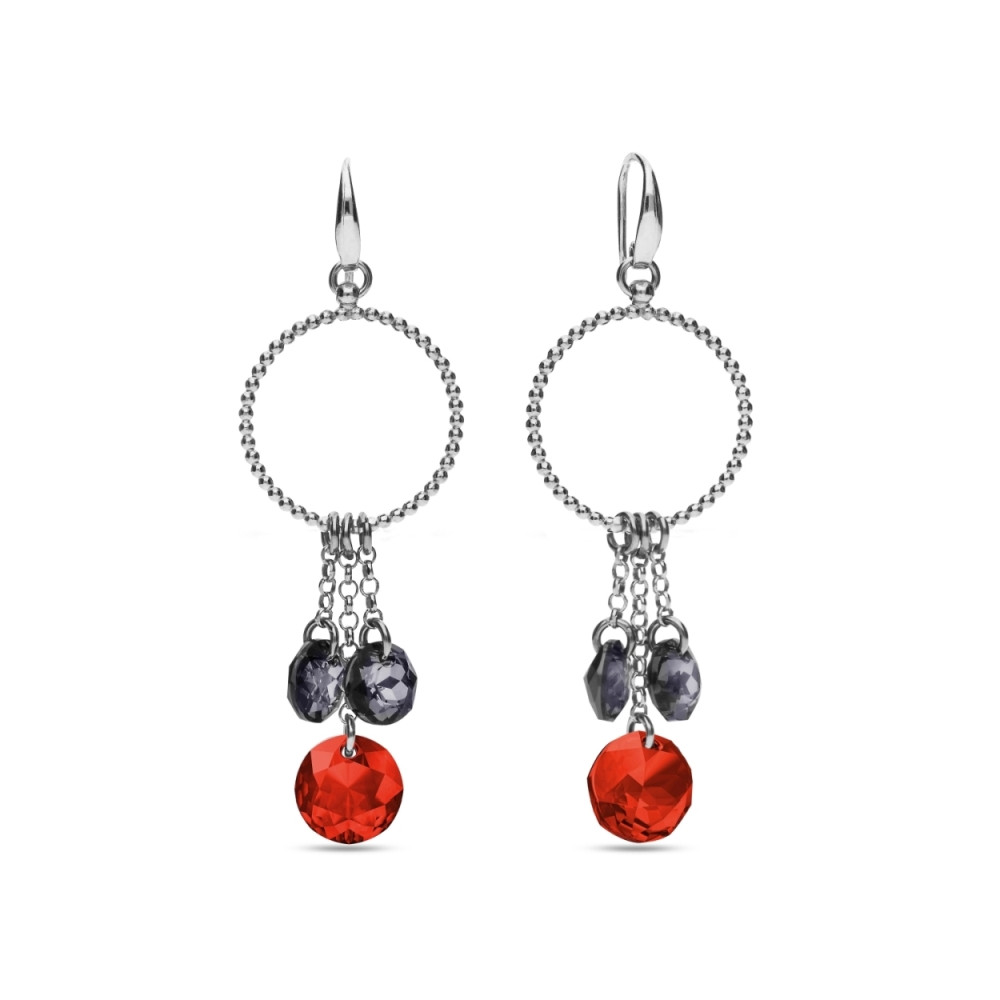 Bracelet made of 925 sterling silver and exclusive crystals in colours Light Siam, Silver Night and Jet.Bracelet length: 19.5 cm (17 cm + 2.5 cm extension). Crystal size: 0.8 cm.