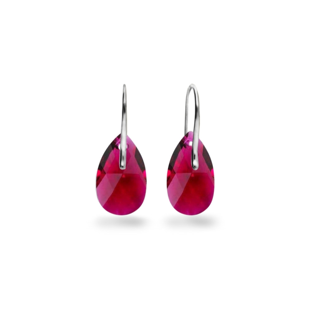 Necklace made of 925 sterling silver and exclusive crystals in colour Ruby.Chain length: 47 cm (42 cm + 5 cm extension). Pendant length: 3.7 cm.