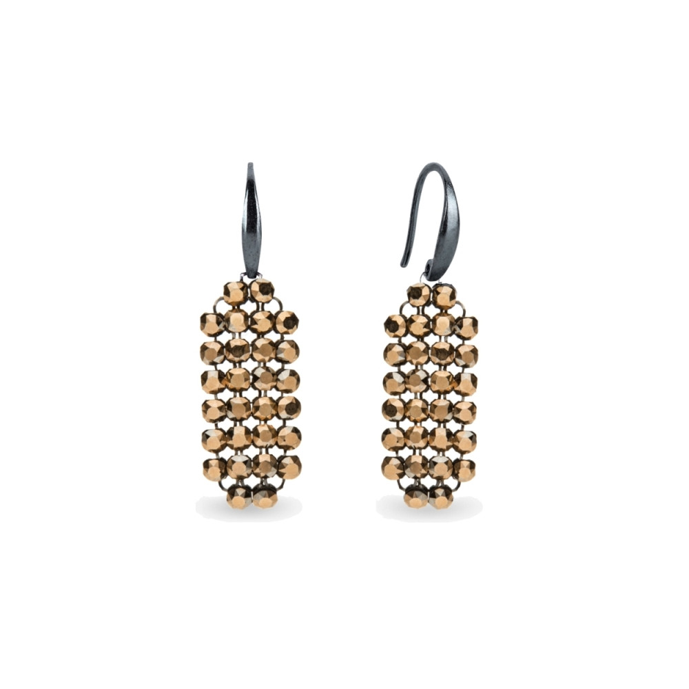 Earrings made of 925 sterling silver and exclusive crystals in colour Rose Gold.Earrings length: 7.5 cm.