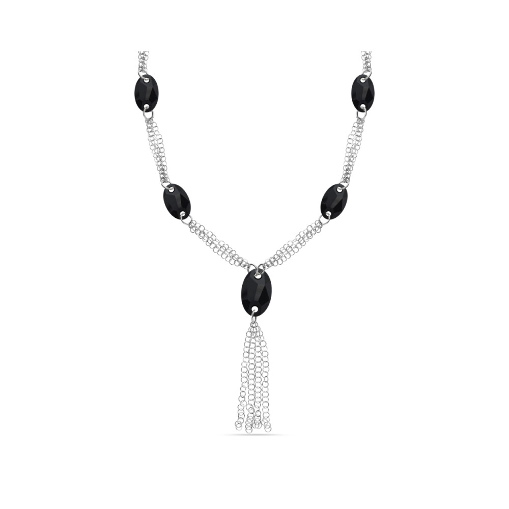 Necklace made of 925 sterling silver and exclusive crystals in colour Jet.Necklace length: 55 cm (50 cm + 5 cm extension). Pendant length: 10.7 cm.