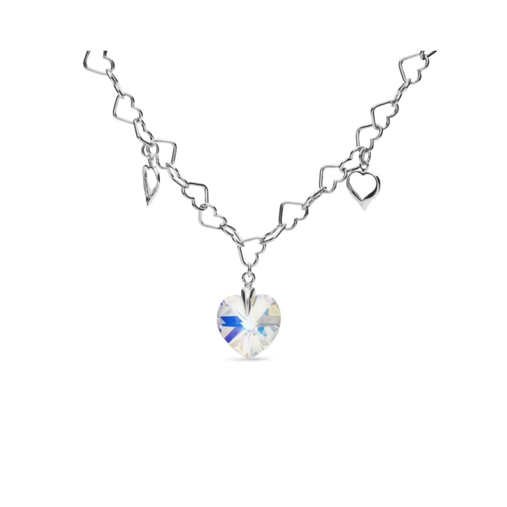 Necklace made of 925 sterling silver and exclusive crystals in colour Aurora Borealis.Necklace length: 42 cm. Pendant length: 2 cm.