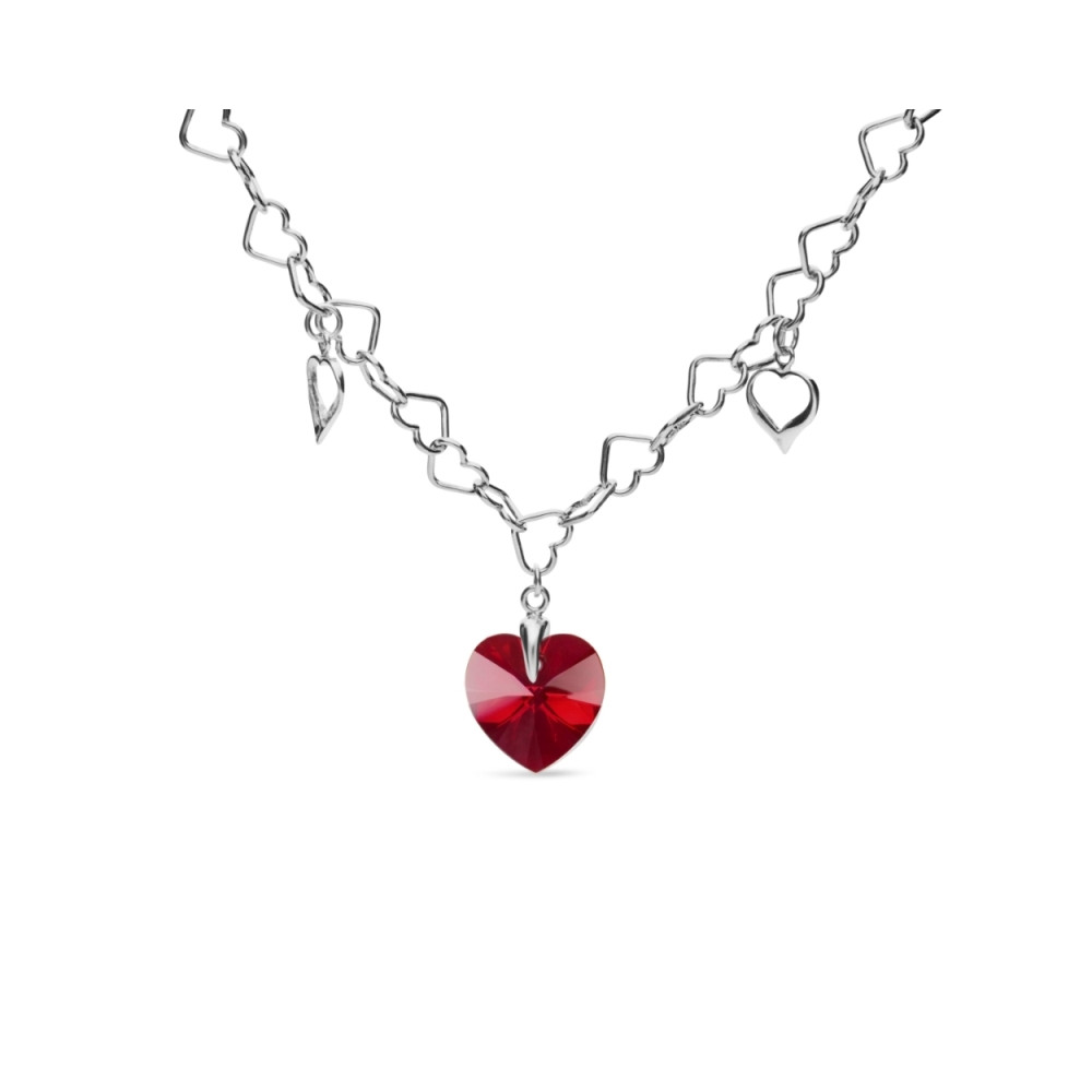 Necklace made of 925 sterling silver and exclusive crystals in colour Siam.Necklace length: 42 cm. Pendant length: 2 cm.