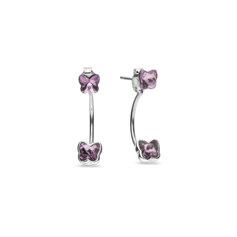 Earrings made of 925 sterling silver and exclusive crystals in colour Amethyst.Earrings length: 1.5 cm.