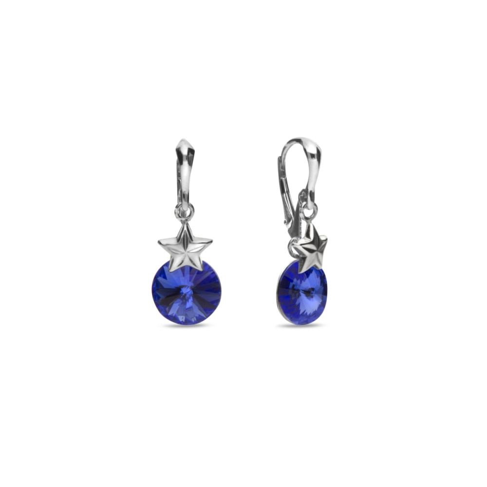 Earrings made of 925 sterling silver and exclusive crystals in colour Sapphire.Earrings length: 2.3 cm.