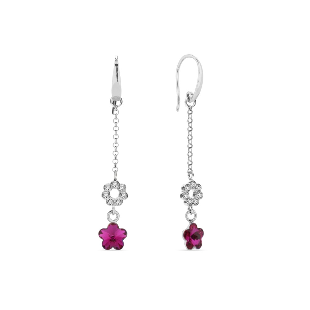 Necklace made of 925 sterling silver and exclusive crystals in colours Crystal and Fuchsia.Chain length: 41 cm. Pendant length: 11.8 cm.