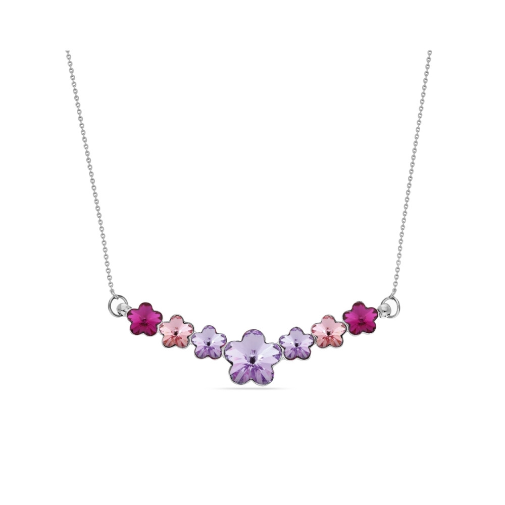 Necklace made of 925 sterling silver and exclusive crystals in colour Violet, Light Rose and Fuchsia.Necklace length: 45 cm (40 cm + 5 cm extension).