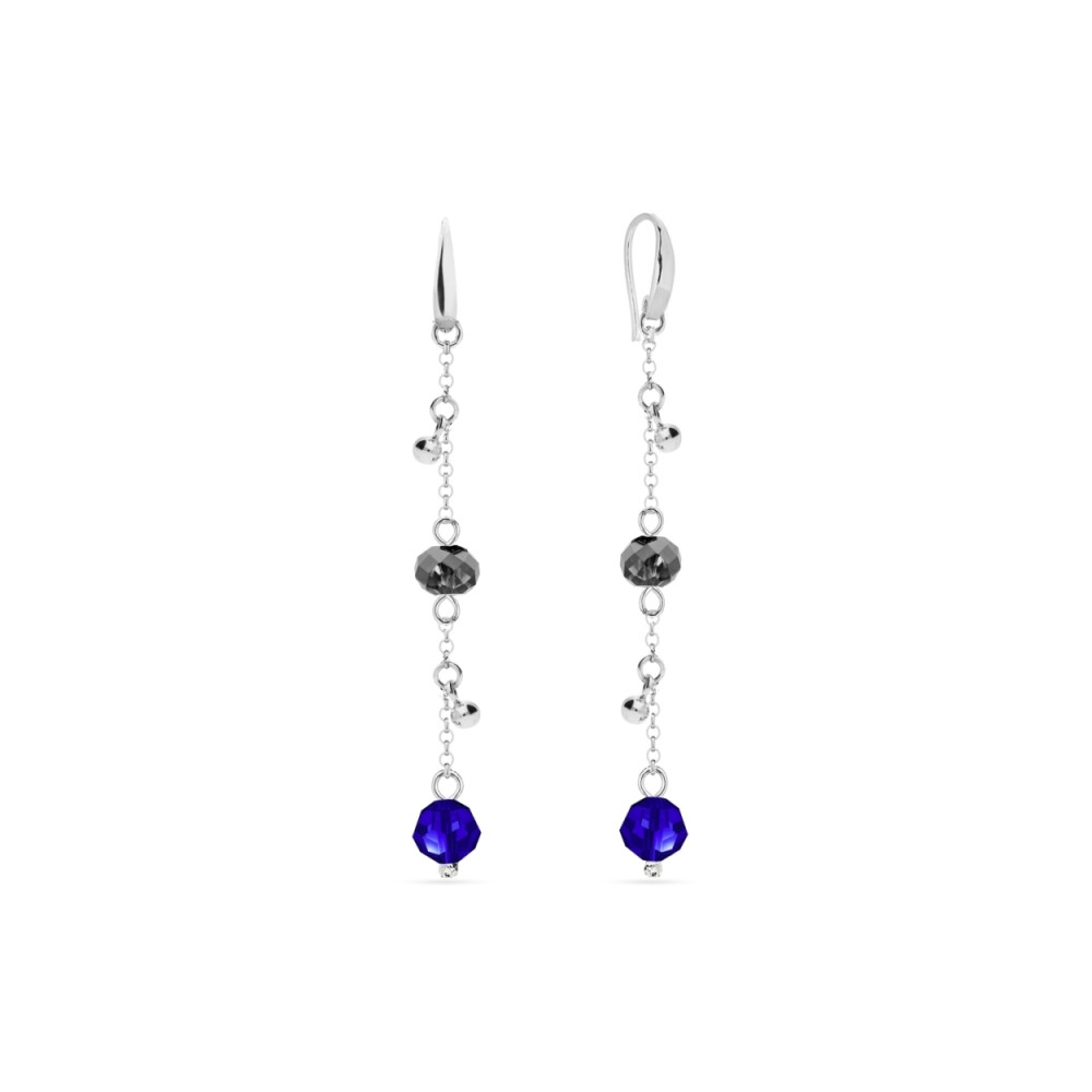 Earrings made of 925 sterling silver and exclusive crystal pearls in colour Light Grey Pearl as well as crystals in colour Crystal.Earrings length: 4.8 cm.