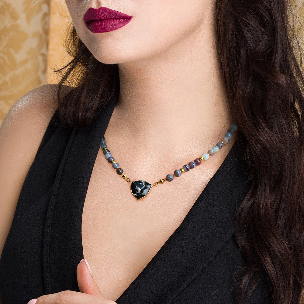 Necklace made of gold plated 925 sterling silver and Austrian crystals in colour Silver Night.