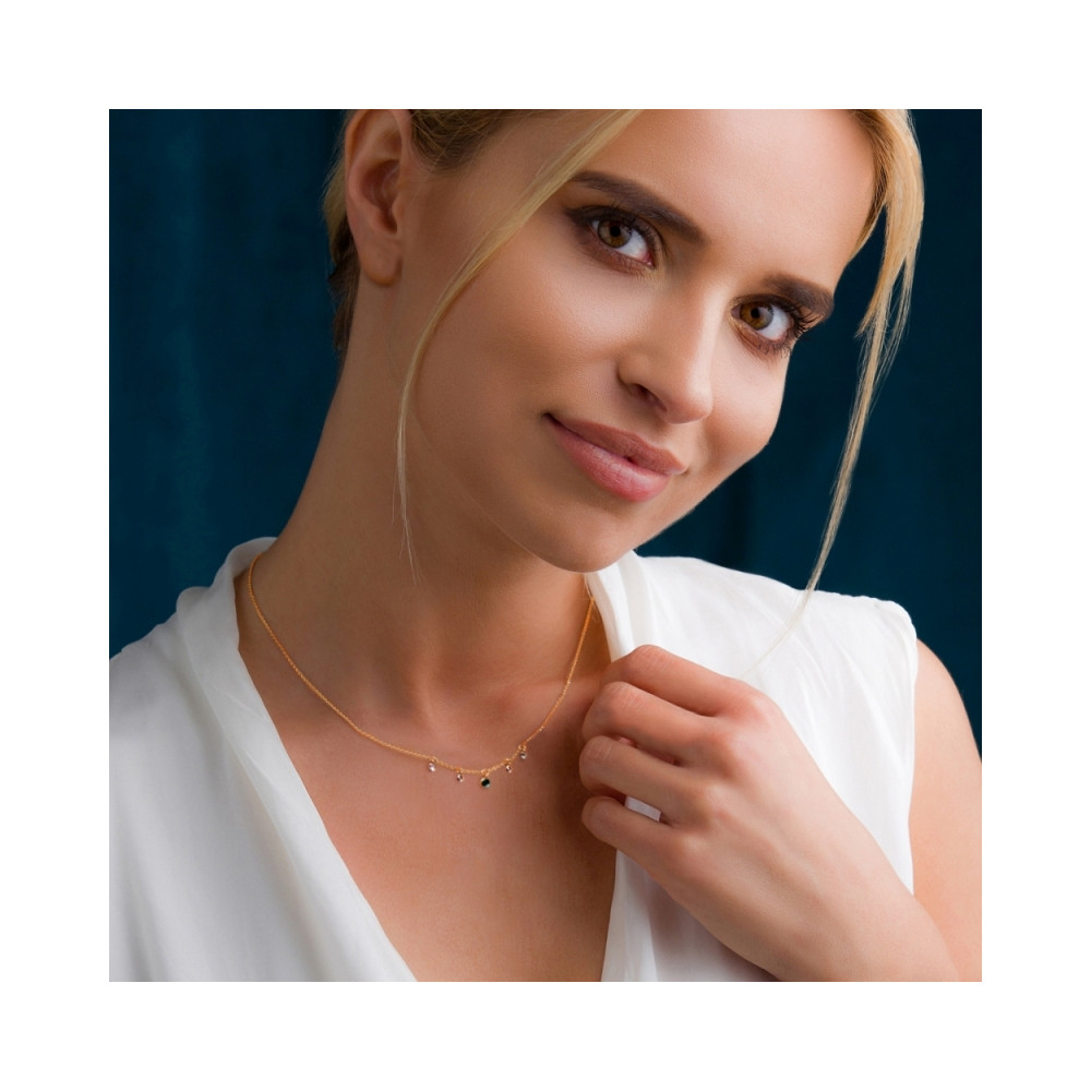 Necklace made of gold plated 925 sterling silver and exclusive crystals in colours Emerald and Crystal.