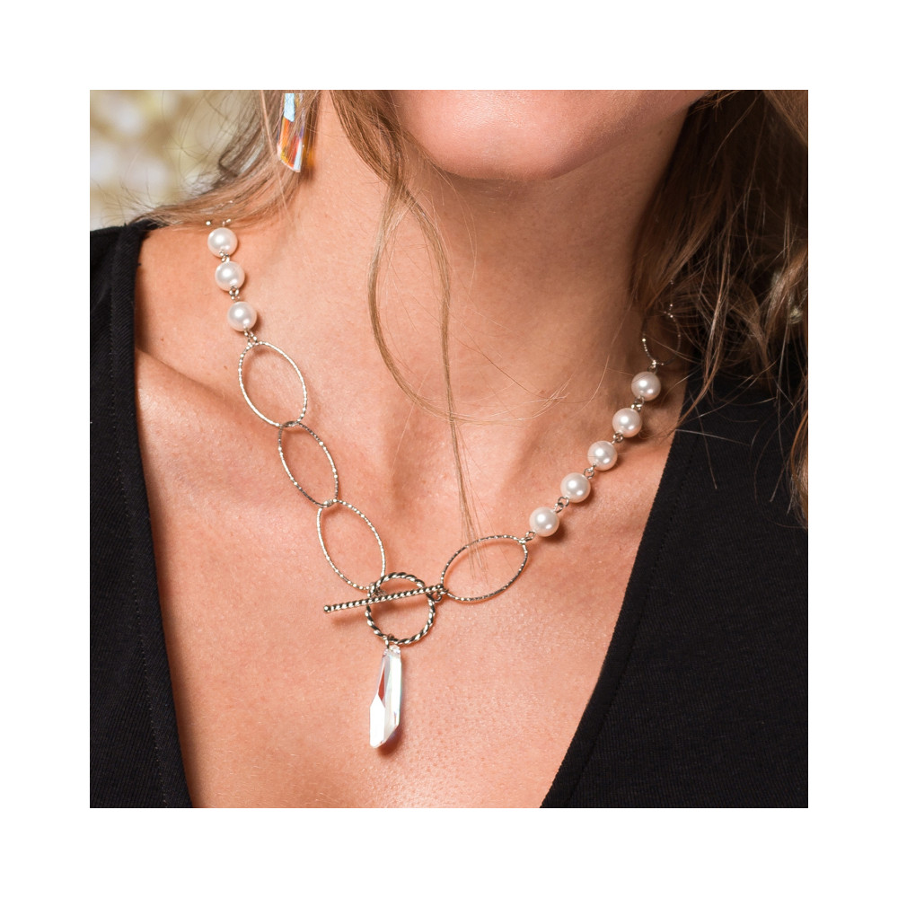 Necklace made of 925 sterling silver, exclusive Austrian crystals in colour Aurora Borealis and exclusive Austrian crystals pearls in colour White Pearl.