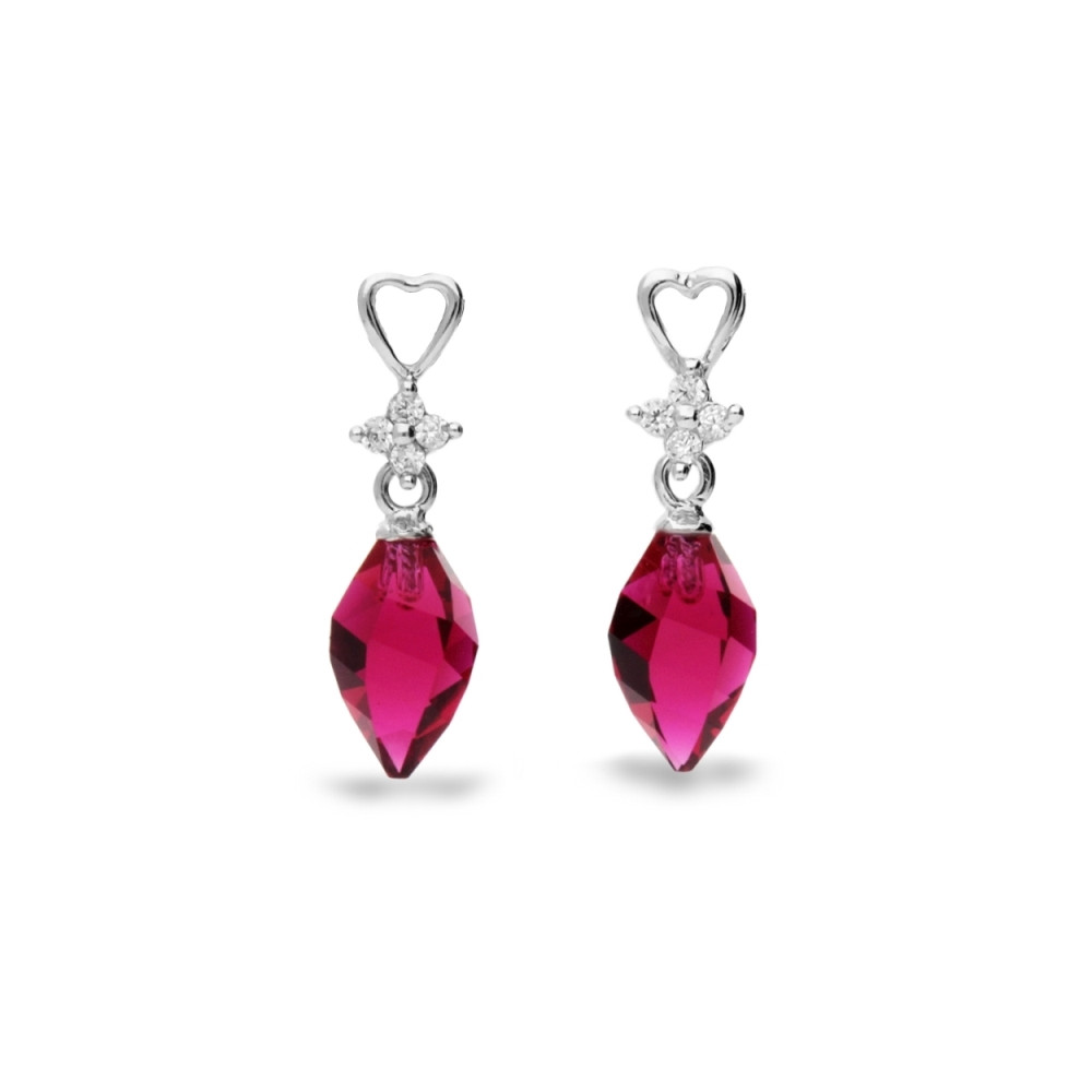 Necklace made of 925 sterling silver and exclusive crystals in colour Ruby.Chain length: 47 cm (42 cm + 5 cm extension). Pendant length: 3.3 cm.