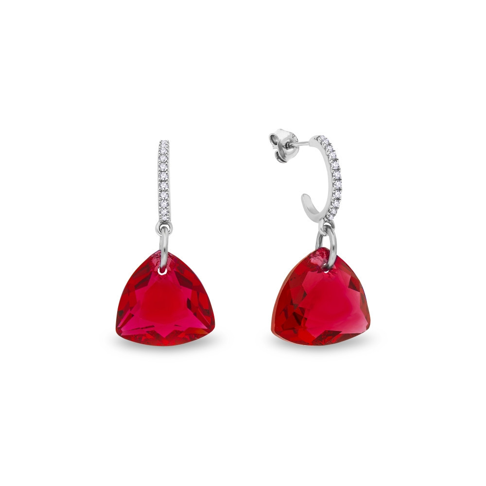 Necklace made of platinum plated 925 silver and Austrian crystals in colour Scarlet.Chain length: 47 cm (42,5 cm + 4,5 cm extension).Pendant length: 2 cm.Crystal size: 1,4 cm.