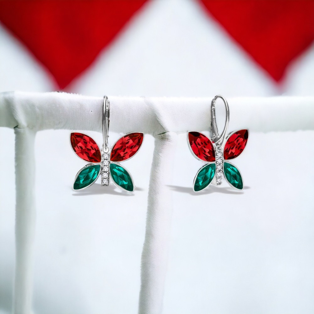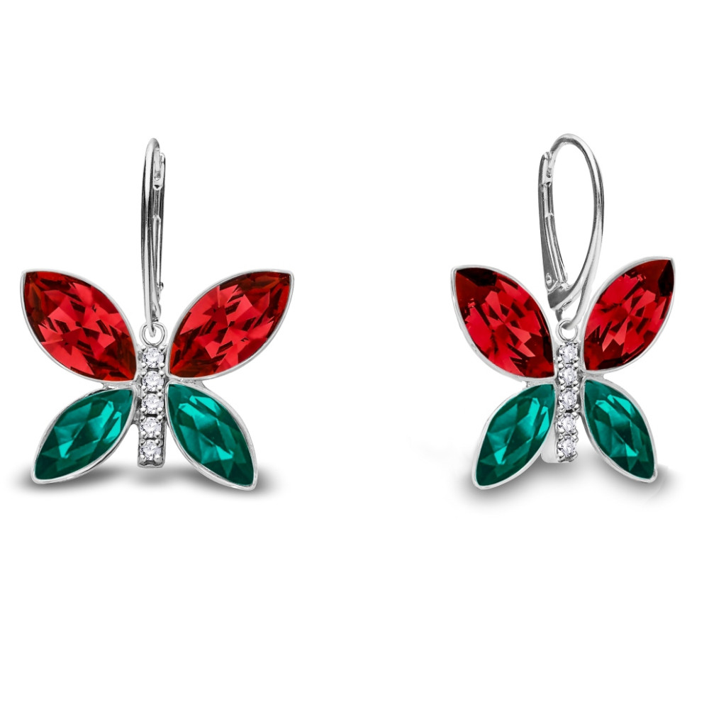 Earrings made of platinum plated 925 sterling silver and Austrian crystals in colour Scarlet and Emerald.Size of the earrings: 1,4 cm.