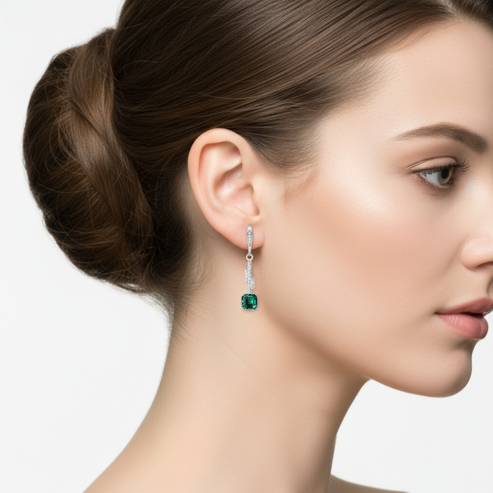 The GEOMETRIC earrings combine contemporary lines with luxurious sparkle. The intense green crystal captures the light beautifully, adding radiance and elegance to every movement. With their refined 32 mm drop and clean modern silhouette, the GEOMETRIC earrings are perfect for women who love unique, artistic, and stylish jewellery.