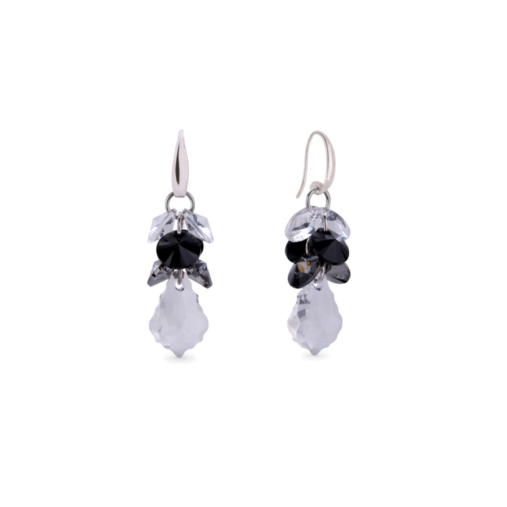 Earrings made of 925 sterling silver and exclusive crystals in colours Crystal, Silver Night and Jet.Earrings length: 4 cm.
