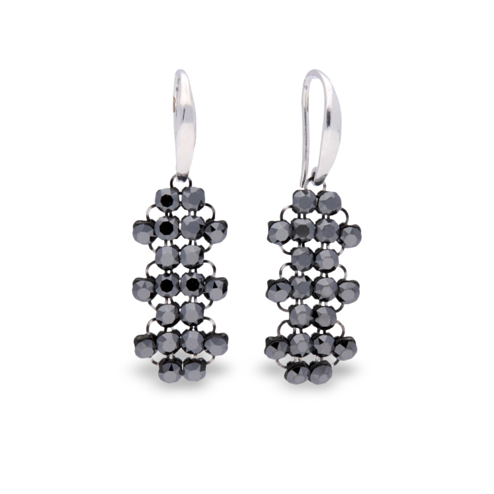 Necklace made of 925 sterling silver and exclusive crystals in colour Jet Hematite.Chain length: 47 cm (42 cm + 5 cm extension). Pendant length: 6 cm.