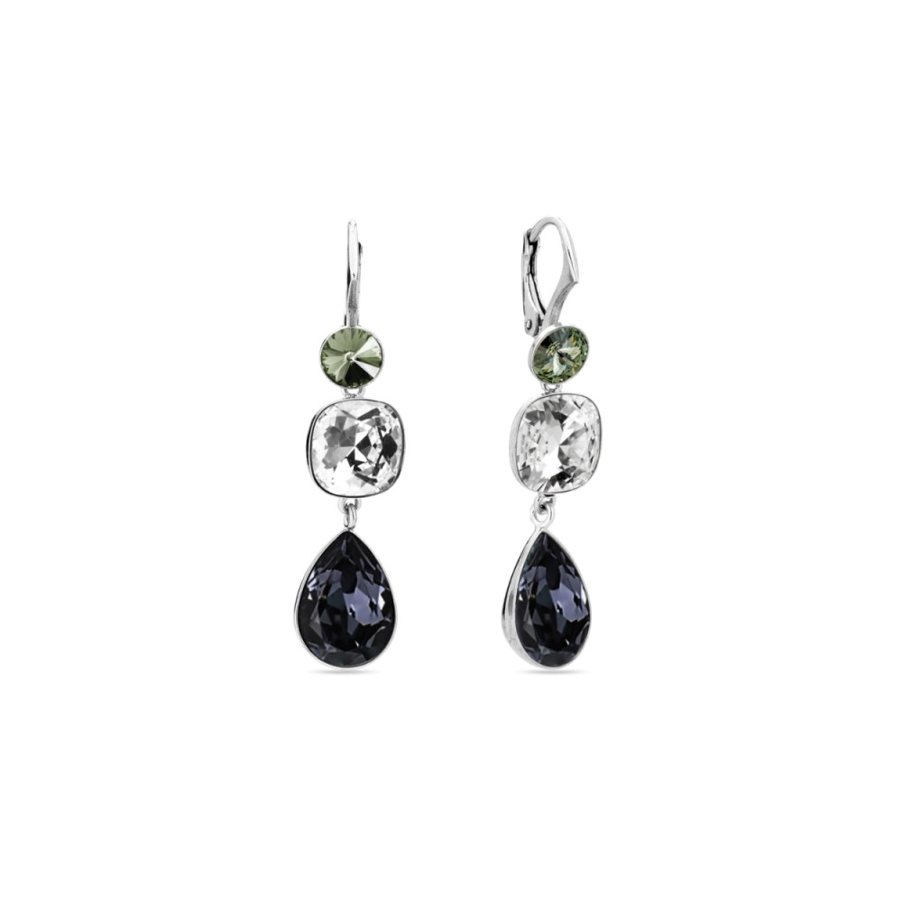 Earrings made of 925 sterling silver and exclusive crystals in colours Black Diamond and Graphite.Earrings length: 3 cm.
