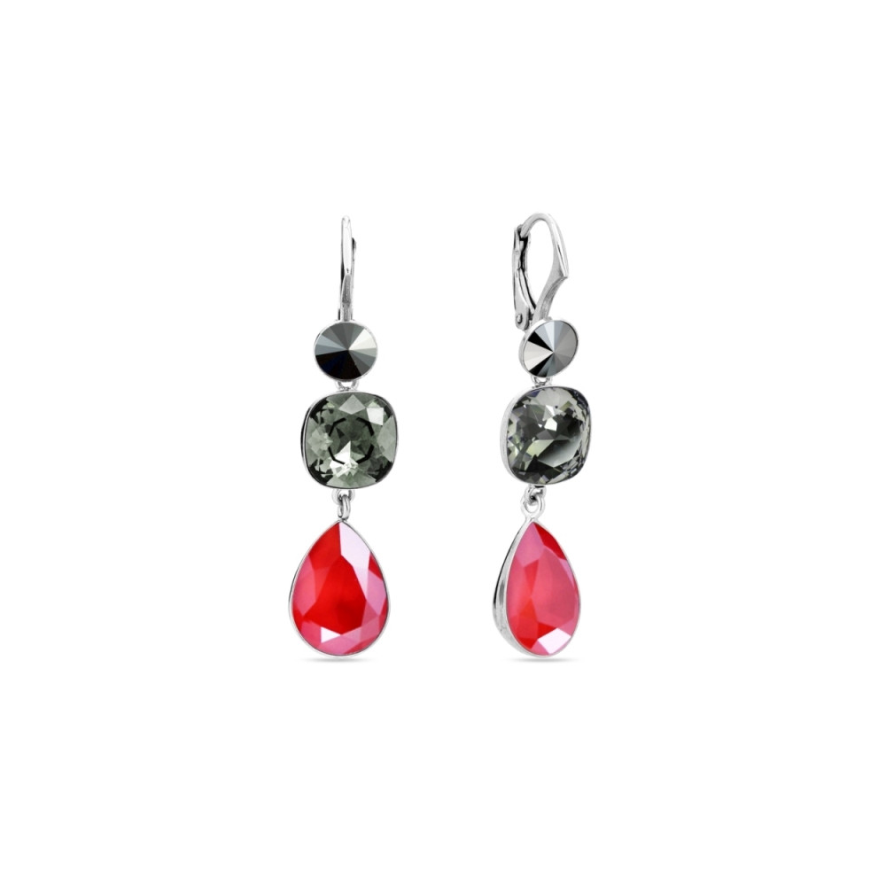 Earrings made of 925 sterling silver and exclusive crystals in colours Jet and Royal Red.Earrings length: 3 cm.