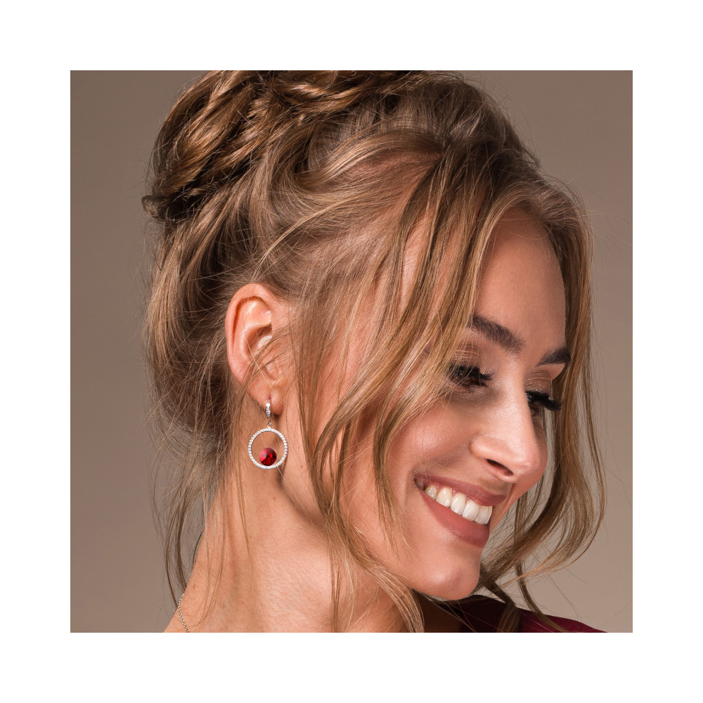 Bracelet made of 925 sterling silver and exclusive Austrian crystals in colour Scarlet.Bracelet length: 20,5 cm (15,5 cm + 5 cm extension). The silver is covered with a layer of platinum, which prevents the jewelry from darkening.