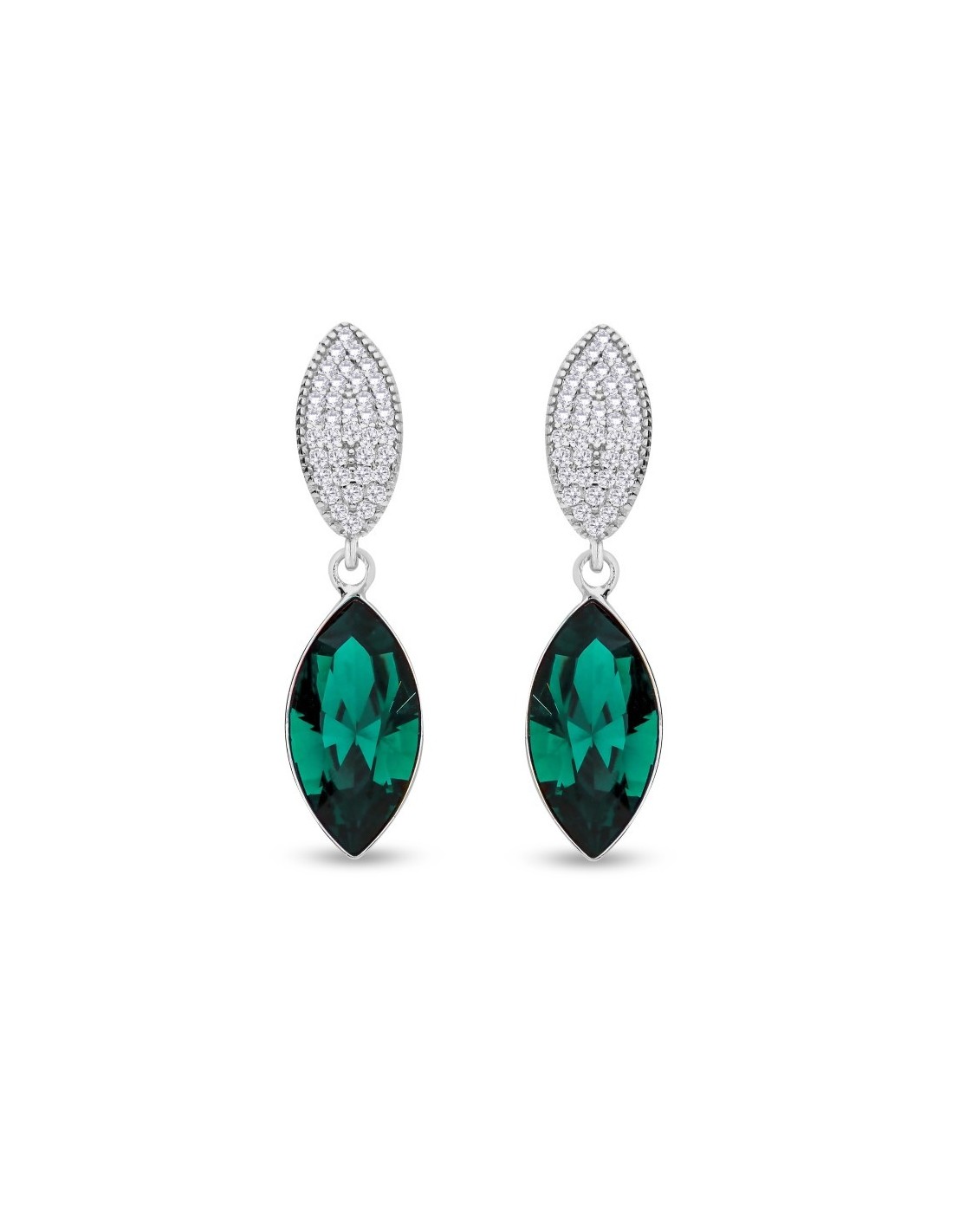 Earrings made of platinum plated 925 silver, exclusive crystals in colour Emerald and zirconia.
