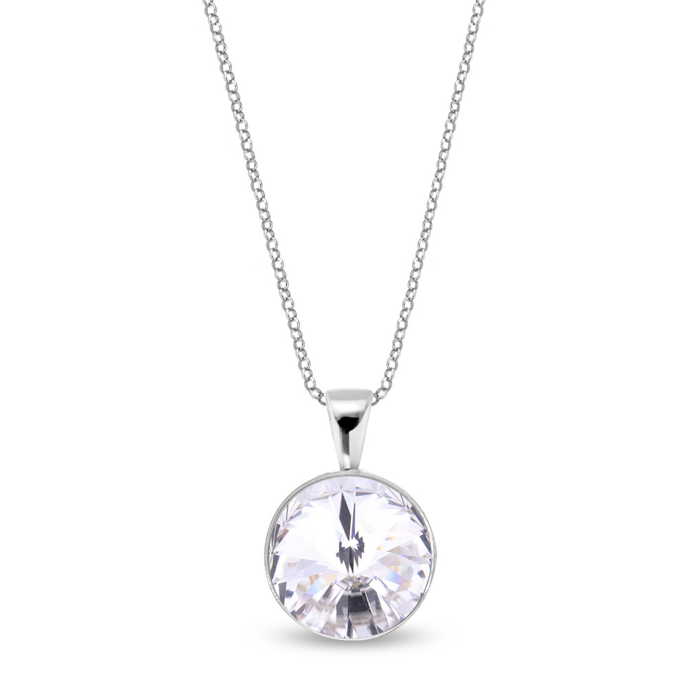 This exquisite silver necklace showcases a captivating round white crystal, elegantly measuring 10 mm in diameter. The pendant's design is both delicate and timeless, with a total length of 16 mm that enhances its charm. Crafted with attention to detail, this piece effortlessly combines modern aesthetics with classic elegance.The accompanying chain measures 45 cm in length and includes an adjustable extension of 7 cm, allowing for a perfect fit at either 38 cm or 45 cm. This versatility ensures that the necklace can be worn comfortably with a variety of necklines and styles, making it a versatile addition to any jewellery collection.